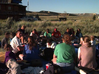The day after the 4th of July. Everyone was tired, so we slept late. At 8:00 we were packed and ready to go from Utah Lake to pick up Mr. Steig's wife. When we reached the airport, we were sitting around with an hour and a half to spare. So I called my brother on the phone for a half hour, and then I called my friend and talked for a half hour too. Afterwards I went walking around the airport until it was time to go. I also had some TCBY white chocolate ice cream, it's the best. Once we got his wife we were on our way to Fossil Butte, where we would camp at Mr. Carl Ulrich's back yard. We played horseshoes, and wrestled. Mr. Urich was a very nice man and I recommend going to his gallery to see his fossils of art.