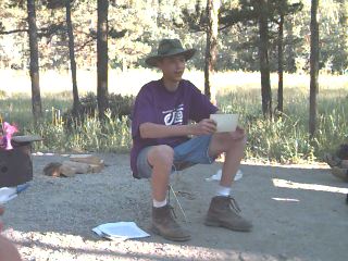 At 2:30 this morning it started to rain so I called Chris in the tent and put up the tarp. I climbed in and went back to bed. At 5:15 my alarm went off so I could go take a shower but I didn't get up. I just went back to bed. At 6:00 we were woken by duty unit. I get up, packed up, and took the stuff to the bus. They loaded it on. We got on and left by 7:00 AM. At 9:30 AM we stopped at a gas station to fill up and for a 15 min break. At 9:45 we left. At 11:20 AM we pulled into a gas station. I went in and got an ice cream cone, which was very good. We got back on the bus at 11:45 ande headed to Waterton Lakes Canadian National Park. Hopefully we will stay there overnight. When we get there I will give my report about all the Canadian national parks. We got to Waterton Lakes around 12:30. We set up and I looked over my report. I took a little walk and saw an 8 point buck. I walked to the river, sat there awhile, then came back to camp with Chris. He made pancakes. They were ok. Then we washed dishes. I came back to camp and started a fire. When 8:00 rolled around we heard a report about wilderness survival, then I gave my report about the Canadian national park system. I sat by the fire a little then went to sleep.