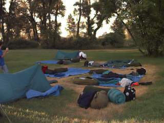 This morning we woke up at 6:30. Grecille was supposed to get up at 6:00 but Troy didn't wake her up. We got up and the first thing I did was went on the bus to get my change of clothes, and go to the bathroom and change. So then I came back and rolled up my sleeping bag and put it by the bus and same with all my other belongings. Today is not going to be a busy day, because we are taking Mrs. Steig to the airport and then picking up Mr. Saber. It will be pretty interesting on the bus because Jeff is right behind me and he is soo funny. Last night he pretended like he kissed me goodnight. It was funny. Oh, yea, I almost forgot! The camper that was next to us saw the school bus come in and told the ranger that she came here to have peace and quite and suddenly a school bus popped out. She didn't really like it very well. So this morning she said to us that she was sorry that we were the best kids she ever knew. We just went out of Canada. The guy (customs man) said beware of the cows, if you hit them you buy them. It was funny! Well, we just stopped at a gas station and we had about 10 things up on the counter and Grecille was buying and it only came up to $3.98! Grecille and I looked at each other like "what"! It was so wierd. They have no tax (in Montana). Thats awesome. We finally got to the airport. We went to the gift shop. I bought a card that has the poem foot prints. I am giving it to my best friend. We stayed there till 3:00. I also got an ice cream cone. Well, I called Allyson collect. We talked for about 20 min. I was so excited to talk to her today. Mr. Saber finally came and we all met him. He's cool. Mrs. Saber's mom made cookies for us. They were good. Not much more happened except we went grocery shopping and made hamburgers when we got to the campsite. We also slept in the tent that night because there where a ton of bugs.