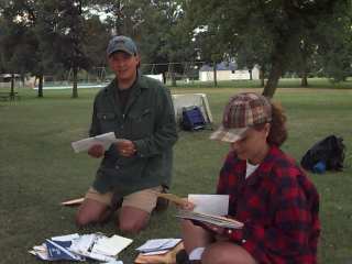 I woke up in the greatest of moods today. Peter and I have decided that if we could stay on this trip for a longer time we would, but we would want to be with our families for a little bit before we continued. We left the "mosquitoe heaven" campground and went to our mail stop. My family sent me lots of goodies this time and some money also. I received so much candy that I think I will be bringing a lot of it home. We played at the park and had a water fight. Chris and I ended up dunking each other in the wading pool. The water was so cold and I ended up sitting with Chris on the bus and laughing about it for hours. We arrived at a campground very secluded from the rest of Montana. It's great, there's a river right behind our campsite and it feels like we are in some kind of enchanted forest. A group of us played hackey sack for awhile until we all got hungry. I can't wait to stay up all night and eat my junk food just before I fall to the sound of the river behind me.