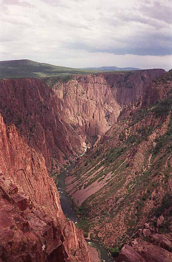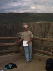 Today we pulled out from Leadville and hit the road to the Black Canyon. The ride seemed to take a long time because I'm too tall to fit comfortably in the bus seats and, to pass the time, I make sure Steig and Saber follow the route printed on the itinerary they gave us. Once we got there however, we had a good time. A ranger took us out to a nice vantage point and explained to us how the canyon was formed and why. Then Casey gave his presentation, telling much of the same information! After that was done, we drove down the road to 3 or 4 more stops to see the canyon. At the last stop a few people took to long, and thus missed the bus back to the visitor center where several people got their junior ranger badges (I choose not to). Brian was really mad when he found out he missed the chance to get his badge. After we finished seeing the canyon, we headed back to camp and played some frisbee. The only downside of the day was it rained on and off the whole night, making it not quite as enjoyable as it could have been.
