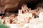 Well, it poured again last night. Surprisingly enough Laura and I stayed pretty dry. We went to the Mesa Verde museum and then to Cliff Palace. Most of us then received our Junior Ranger badges. We arrived at Red Rock camp ground in New Mexico around 4:30 PM. At 5:30 PM we left to do our wash and shop. Half of us went to the grocery store, the other half to the laundromat. I went to the grocery store. We bought more food then we'll need, but at least we won't run out. When everyone was done we went to the laundromat to help out the others. It was pretty fun. We didn't get back to the campsite until almost 9:00 PM! Many of us had boughten meat at the store to eat for supper that night, but it was too late to cook it. We were told we'd have to cook it in the morning for breakfast! Somehow I doubt I'll be able to eat a cheeseburger at 7:00 in the morning! We didn't even bother to set up our tents. We just laid our tarps out on the sand and threw our sleeping bags on top and went to sleep.